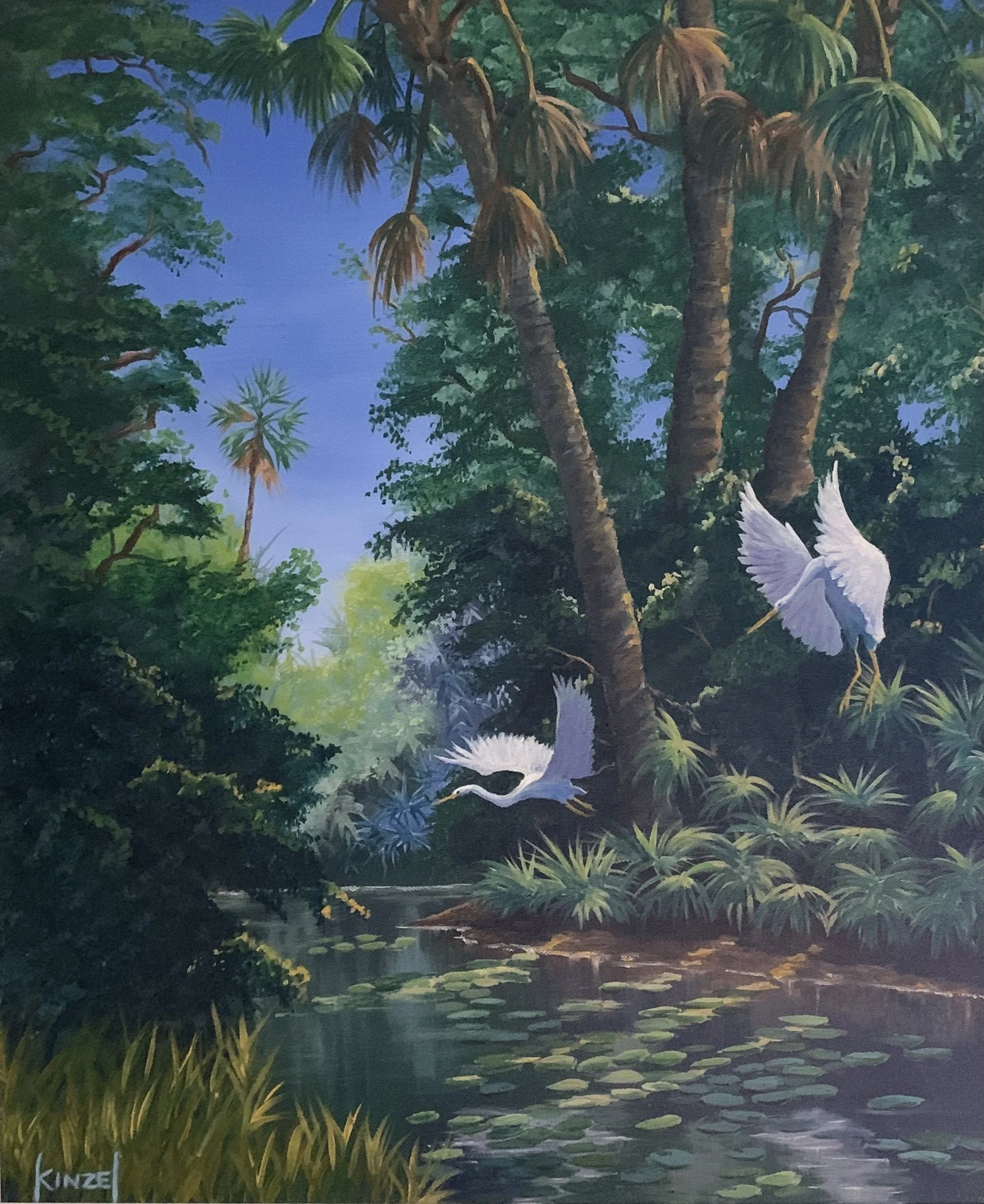 A self-taught artist, most of his work is inspired by his time on the water fishing. His paintings are his observations from nature. Many of his landscapes are put together by memory. He currently paints with acrylics and lives in south Florida with his wife, Rebecca.